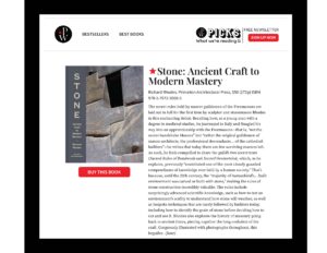 “Richard Rhodes’s book on stone is at once encyclopedic and poetic. Richard literally circles the globe and travels through the ages to find the stones that are most expressive of the human soul. As he makes clear in these chapters, building stone is not just material — it is a living thing that can, if properly appreciated and respected, both shelter and inspire. I learned something new on every page, even about subjects like ancient Roman roads and Puglian trulli that I thought I knew a lot about. The writing is always engaging and the photos alone constitute a fascinating art/architectural history course. I have come to look at stone buildings, roads, arches, walls and bridges in a whole new light thanks to Richard’s guidance. This book truly reflects a lifetime of knowledge, travel, meditation, and hands-on experience with the hardest,